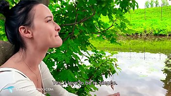 Красотка пришла на речку немного позагорать и с самого утра у девушки все не как не получалось найти подходящее место где бы красотка могла погреть свою попку. Малышка увидела в далеке молодого парня который сидел на реке и ловил рыбу и красотке захотелось подойти к парню и посмотреть что он там делает. Красавица начала флиртовать с рыбаком и захотела с мужчиной заняться сексом. Парен трахнул малышку своим членом в рот и запихнул свой большой болт красавице как можно подальше в глотку чтобы девушка ощутила его огромный член у себя прямо по яйца во рту.